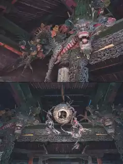 o The most eye-catching feature inside the main hall is the Ming Dynasty "Double Dragons Playing with a Pearl" colored sculpture, with two golden dragons coiling and leaping in vivid postures