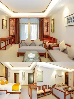 Chinese-style decoration and landscaping are natural and comfortable. 🏡The entire hotel covers an area of about 40,000 square meters, and you can directly see the scenic spot Huangqi Mountain! 🎍🎍
