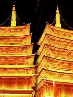 Shuangfeng Temple: Beautifully lit at night, the contrast in the ancient city is striking, like being in Japan
