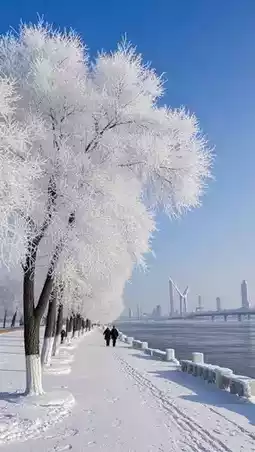 Walk along the Songhua River and see the sparkling frost-covered trees.