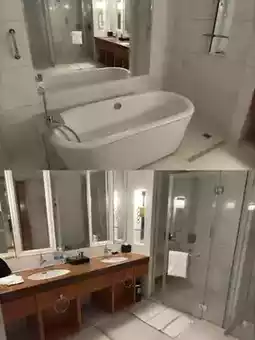 During check-in, I was pleasantly surprised to be upgraded to an Olympic Sports Center View King Room. The room was spacious and bright, and the bedding was soft and comfortable. As soon as I lay down, the fatigue of the journey instantly dissipated. The room furnishings retain a distinct sense of age, such as the bathtub, which is different from the simple and stylish design of new hotels, but full of retro charm. Opening the curtains, the magnificent scenery of the Jinan Olympic Sports Center comes into full view, and the headquarters of the Langchao Group in the distance is also clearly visible. The sun is shining during the day, and the lights are brilliant at night. Every scene is as beautiful as a painting. Another time I stayed, the room was particularly large, with a kitchen at the entrance. Both the living room and bedroom were equipped with large desks. Although the bathroom had a sense of age, the space was spacious and grand.