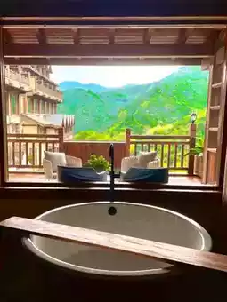 The rooms are super big and have a bathtub 🛁. Open the window to see the stunning mountain view 🌲.