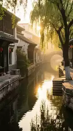 Baihuazhou water alley morning light: bluestone paths, willows brushing your face, like a miniature Jiangnan.