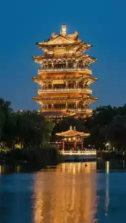 Daming Lake Chaoran Tower night view: a rare northern pavilion light and shadow feast;