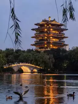 · Then walk to Daming Lake Scenic Area (free entry). Don’t miss the lighting ceremony at Chao Ran Tower (usually around 7:00 PM), when the tower lights up spectacularly, known as the “Number One Tower North of the Yangtze.”