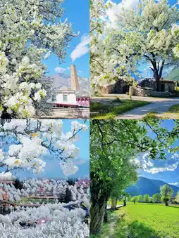 Ka'er Township: Savor a cup of butter tea under the shade of 300-year-old pear trees, immersing yourself in the tranquility of time. As the gentle breeze rustles through the branches, pear petals fall like a delicate rain, dusting the ancient prayer wheels, creating a captivating scene.