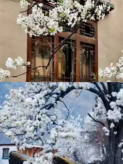 From mid-March to early April, you must experience the "half pear blossom, half snow scene" in Jinchuan, western Sichuan!