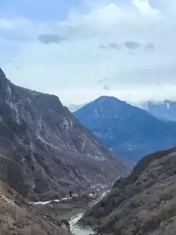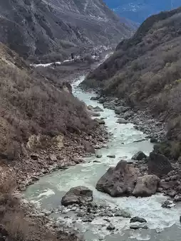 Along Provincial Highway S211, the Dajin River flows alongside. The river surges, crashing against boulders and splashing up white water. The mountains on both sides are layered, and the brown mountains intertwine with the snow, majestic and magnificent. I stopped at the viewing platform along the way and looked out at the rolling mountains stretching to the horizon. When the clouds and mist linger, the peaks appear and disappear, like a fairyland. This is also a good place to shoot time-lapse photography, recording the changing clouds and the interplay of light and shadow.