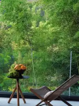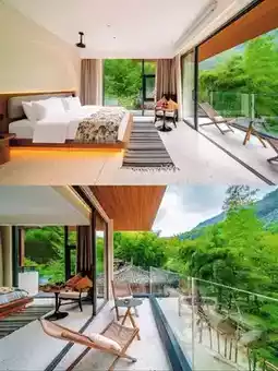 ▫ Panoramic floor-to-ceiling windows + forest aesthetic