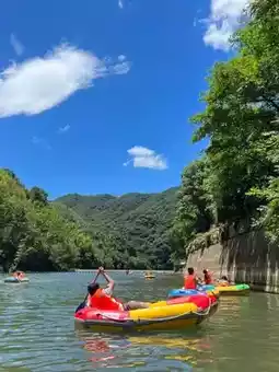 Drive just 5 minutes to reach the bamboo rafting base! In the early morning, the mist rises from the creek, creating a dreamy atmosphere. Floating on a bamboo raft amidst lush green mountains, with sunlight sparkling on the water, is pure bliss ✨. The raft guide chats with you while paddling, pointing out wild fruits and birds—so heartwarming! For thrill-seekers, opt for kayaking! Race through the valley with friends, splashing water everywhere. The summer heat is instantly washed away, leaving you exhilarated!