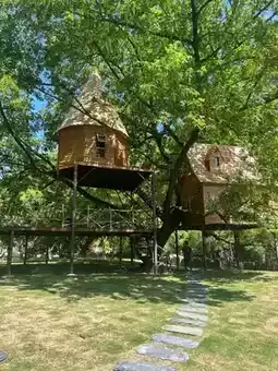 This fairytale-like treehouse café resembles an elf's dwelling, with every corner serving as a natural photo backdrop.