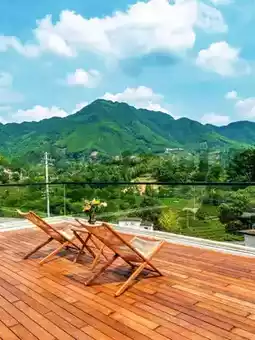 🪑 The mountain view terrace offers a mid-mountain perspective, very chill~ The host thoughtfully provides local specialty Tingxi Lanxiang green tea 🍵, with a fresh tea aroma and mountain breeze on your face;