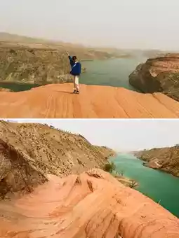 Anywhere by the roadside is Danxia landform, where you can park and take photos for free. Along the way, you can see the Great Wall ruins, which are just a very long row of earthen walls. To the north is the Mu Us Desert, where you can play freely without any entrance fee or scenic area. The seemingly desolate desert is actually full of various forms of life. If you observe carefully, it’s very interesting and you can always find fun little things, though your ears get full of sand, which is not very pleasant.