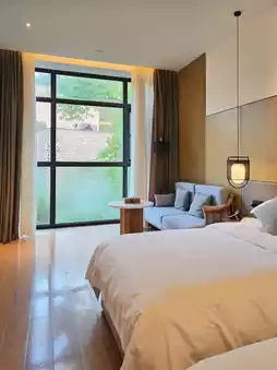 The 43 elegant Song-style rooms offer views of the spring scenery outside the window. The hotel also has a tea room 🍵, a starry sky bookstore, a coffee shop ☕, and a restaurant. The breakfast is exquisite and rich. It's very chill to relax and read in the small courtyard~