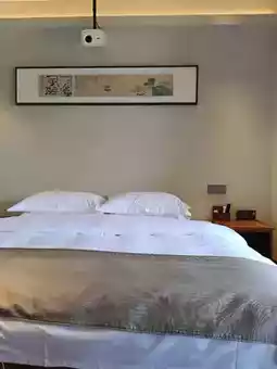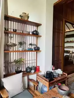 Stepping into this Zen-inspired Chinese-style guesthouse nestled amidst mountains and rivers feels like entering a serene and otherworldly haven. The dark-tiled roofs and white walls stand gracefully against the landscape, with upturned eaves sketching an ancient Eastern charm. A winding stone path meanders through the shadows of swaying bamboo, creating a picturesque harmony. Upon entering, the warm tones of wooden furniture exude a comforting ambiance, complemented by simple cotton and linen fabrics. Ink wash paintings on the walls evoke the essence of landscapes, while Zen-inspired floral arrangements quietly bloom on the tables, embodying the aesthetic philosophy of "simplicity and elegance." In the morning, enjoy the chirping of birds, bask in the sunlight, and savor a cup of freshly brewed tea on the terrace. At night, fall asleep to the moonlight and the sounds of nature. Here, time slows down, allowing you to rediscover inner clarity and peace, and to experience the poetic and tranquil essence of a Zen-inspired Chinese lifestyle.
