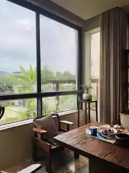 The interior design is equally meticulous. Wooden furniture is rustic yet refined, with clear textures that exude a natural charm. Intricately carved doors and windows resemble three-dimensional paintings, showcasing the subtlety of Chinese aesthetics. The walls are left blank, adorned with a few ink paintings, creating a serene ambiance that embodies the understated elegance of Chinese style.