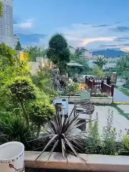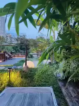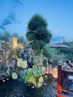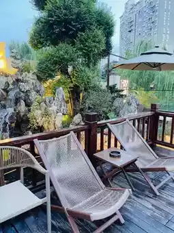 In the courtyard, the old wooden tables and chairs are gilded with a golden edge, and the stone path glows warmly in the twilight. From afar, the occasional chirping of birds adds vitality to this tranquil scene.