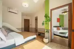 As soon as you step into the courtyard, you'll be amazed😍! The courtyard is filled with ceramic elements creating a great atmosphere—handmade ceramic vases holding osmanthus flowers, the living room is full of exquisite small works by local ceramic artists🎨, instantly immersing you in the artistic slow life of Jingdezhen~ The rooms are super large and bright👏, sunlight fills every corner, and the bedding is so soft you won’t want to move once you lie down💤! Outside the floor-to-ceiling windows is a beautiful courtyard view, opening the window in the morning feels like being inside a painting🌿.