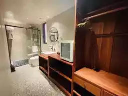 • The bathroom is equipped with sandalwood-scented mugwort toiletries, and the hairdryer is a Laifen.