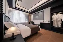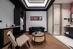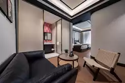 The guest rooms are beautifully designed with a warm and cozy atmosphere created by the extensive use of wooden elements. The beds are clean, and the bedside lamps with soft lighting enhance the room's coziness. Located in the popular Laochang 798 Ceramic Street, the homestay offers a large parking lot and is equipped with smart devices, including 1080p projectors with VIP streaming access. Each room type features large inward-opening windows for excellent lighting, perfect for reading, watching movies, or simply relaxing to unwind after a long day.