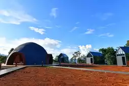 The hotel's uniquely designed rooms, from exterior to interior, along with tent accommodations and BBQ campsites, promise a memorable experience.