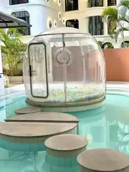 After entering the gate and checking in, walk a few steps inside and you will see a blue swimming pool🏖 and a red spiral staircase with a three-dimensional design. It is really a great place to take photos!💯📸