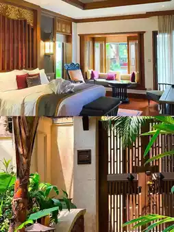The hotel's food and breakfast restaurant environment is beautiful, and you may encounter peacocks walking around. Don't miss the coconut jelly and coconut smoothie. If you have dinner, remember to go to the Thai restaurant. The tom yum goong and curry crab are amazing!
