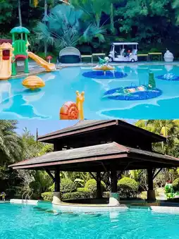 The hotel's swimming pool is my absolute favorite! The huge outdoor pool🏊🏻♀️ is surrounded by tropical plants, making swimming feel like gliding through a rainforest. There's also a dedicated children's🧒🏻 pool and a water park, offering a hands-free experience for parents with kids. The hotel even has a petting zoo where you can interact with rabbits🐇 and peacocks🦚 up close, which is super fun.