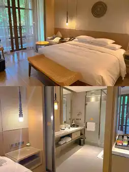 The room design is infused with rich Dai-style elements, featuring wooden furniture paired with vibrant ethnic🌌 patterns, creating a wonderful ambiance. The rooms are spacious and bright🌞, with private balconies offering stunning views. Whether it's watching the sunrise in the morning or enjoying the night view in the evening, it's incredibly relaxing. The bedding🛏 is soft and comfortable, and the bathroom facilities are top-of-the-line, showcasing quality in every detail👍.