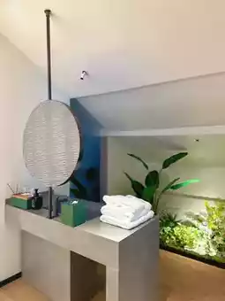 The room has a huge bathtub🛁, perfect for washing away the tiredness of the journey✌✌The room is also decorated in a tropical rainforest style, with smart devices throughout, everything was perfect👌