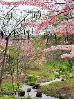 In addition to cherry blossoms, the flower garden also has a variety of tropical plants and flowers.