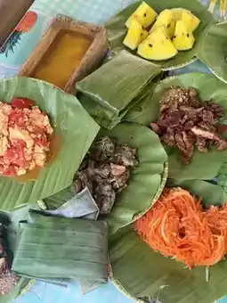 Using banana leaves as plates, we enjoyed grilled chicken, meat, and fish, along with various fresh vegetables and fruits - authentic flavors that were completely satisfying.