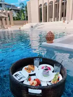 The pool water is very clean, and the rooms are very dry, which shows that the cleaning is done very well. The breakfast is also very good, with large floor-to-ceiling windows. It's so pleasant to eat breakfast while looking at the beautiful scenery. The whole room is very large, with a balcony and a bathtub, and the 1.2m bed is super comfortable to sleep on.