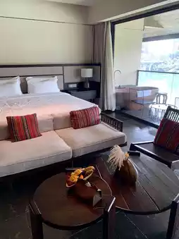 I stayed in a river-view room with a terrace and large bathtub. Soaking in the bath at night with the breeze was incredibly comfortable. The room facilities were very clean, and they even provided fresh fruit. In the morning, they can deliver breakfast to your room, which is fantastic.