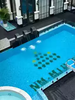 With a 1500㎡ garden courtyard 🌿 featuring winding vines and swaying palms, plus a double-layer heated pool 🏊♂️ reflecting the sunset over the Mekong River, every shot is Instagram-worthy! In the evening, sip cocktails 🍸 at the poolside bar with your parents while watching the sunset—pure bliss!