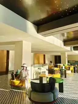 🌴 The trendy Dai-style hotel experience is truly lovable! The first impression was stunning with the "Dai Trendy Style" design, turning Dai brocade patterns into colorful geometric shapes. The lobby's green plants paired with bright yellow sofas, and even the corridor carpets feature tropical fruit prints~