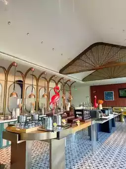 Especially the pool on the 5th floor, with blue and white tiles surrounded by palm trees. When the sunset shines in the evening, it’s perfect for filling your social media grid with photos~