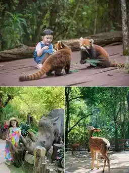 The top family hotel in Xishuangbanna! Panoramic standalone wooden cabins built in the forest 🏕️, 270° panoramic glass windows with rainforest views right outside, plus you can pet little pandas, feed sika deer, get up close to rhino horns and sika deer 🦌, and observe insects you only read about in books 🦋—kids will love it