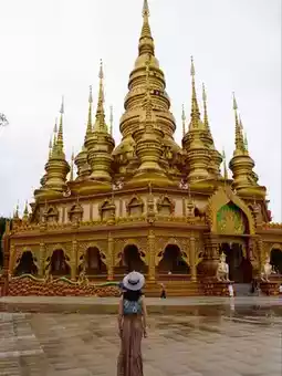 At the top, you can overlook the entire Jinghong city, where the rainforest's green sea blends with the urban lights, offering an extraordinary view! When tired, sit in the temple’s tea pavilion, order a cup of Dai herbal tea, and listen to the sound of the wind rustling through palm leaves—your worries will quietly fade away.