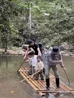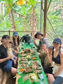 At 9 AM, a private car picked us up at the hotel to start the most anticipated day of the trip: 📍Jino Mountain Rainforest Hiking. We chose the short 3-4 km route, about 80% by water. Our group of 7 was just right for one tour group. Besides the main guide, the 3 kids had 2 child guides to look after them, so we were basically “hands-off” parents. The experience was amazing! During the hike, we swung on swings, caught crabs, and learned about insects and plants—joy you can’t find anywhere else, totally worth it!