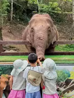 Since the previous day was physically demanding, we slept in and left around 10:30 AM to visit 📍Wild Elephant Valley. We experienced the high-altitude elephant viewing walkway, rainforest sightseeing cableway, and the kids’ favorite—feeding the elephants 🐘. Our two kids fed three large baskets and still didn’t want to stop. The whole park has a strong rainforest vibe, perfect for photos!