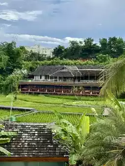 Opening the villa window reveals vast rice fields 🌾, waking up to birdsong in the morning, the sunset wrapping the rice ears in golden edges in the evening, even the wind carries the scent of rice flowers~ The coconut trees by the pool reflect in the water, just leaning on a lounge chair, no need to find an angle, it’s an instant Instagram-worthy shot!