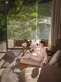 The villa has all river-view rooms, with the Lancang River flowing gently right beneath your feet! The bottomless river view is fully in sight! When the evening sunlight passes through the branches of century-old trees🍃 and gently sprinkles on the river surface, at this moment, the shimmering golden light becomes tangible.