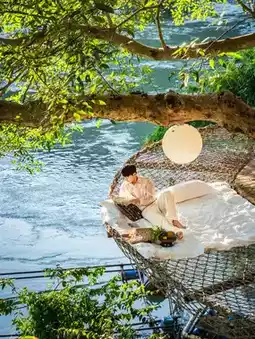 Lying on the hammock, feeling the gentle river breeze, leisurely flipping through a magazine or sipping coffee☕️, watching the sky slowly turn into a deep blue! 🏖️ The vacation vibe instantly skyrockets! I think this is why I love this place so much.