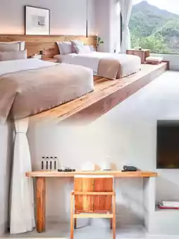 The rooms are cleverly designed to blend in with nature, featuring wooden furniture and panoramic floor-to-ceiling windows. Lie in bed and enjoy the stunning mountain views. Wake up to the morning sun filtering through the leaves and fall asleep to the gentle breeze at night—pure bliss. The rooms are also fully equipped with smart devices, so you don't have to worry about comfort.