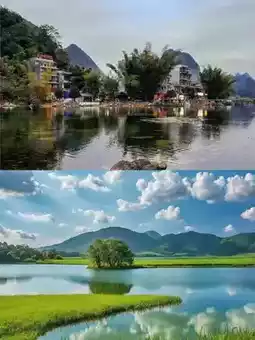 3. Quyang Lake🌅: Known as the "Guilin on the Water," the lake is dotted with islands, and the crystal-clear water reflects the blue sky, white clouds, and green hills, creating a breathtaking scene. Take a leisurely boat trip🚢 across the lake, enjoying the gentle breeze, or camp🏕️ by the lake to admire the sunrise and sunset, embracing the tranquility of nature.