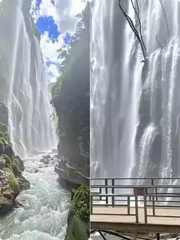 ▫️ Tongling Grand Canyon 🌿: When walking in the rainforest, you suddenly encounter a 188m-high waterfall smashing into the pool! Stand in the Water Curtain Cave and reach out to catch the water splashes. The cool mist hits your face, and you feel like your whole body is "charged" by nature 🔋
