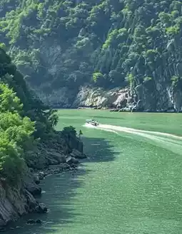 The natural scenery of Zhengguo Canal is equally captivating. The Jinghe Grand Canyon, one of the core landscapes of the scenic area, boasts towering peaks, rushing rivers, and grotesque rocks of various shapes lining the canyon walls. A boat trip through the canyon reveals sheer cliffs that appear to have been carved by knives and axes, with the river surging beneath, evoking awe for the magic and magnificence of nature.