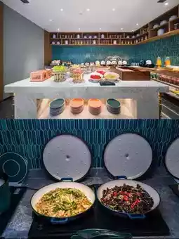 The 180-square-meter buffet restaurant offers a wide variety of culinary choices, from authentic Jingchu flavors to international cuisine. During breakfast, a variety of freshly baked breads, steaming hot porridge, and delicate side dishes will start your day off right.