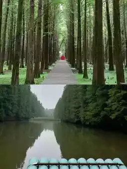 🌳Towering metasequoia trees fill your vision, straight and tall, like green guardians planted by Mother Nature herself🌲. And the incredibly healing matcha-colored lake💦, with its clear, emerald green water, resembles an overturned palette of matcha pigment. Every frame is so beautiful that it could be used as wallpaper! Here, breathe in the fresh, negative oxygen ions and feel your body and mind rejuvenated.